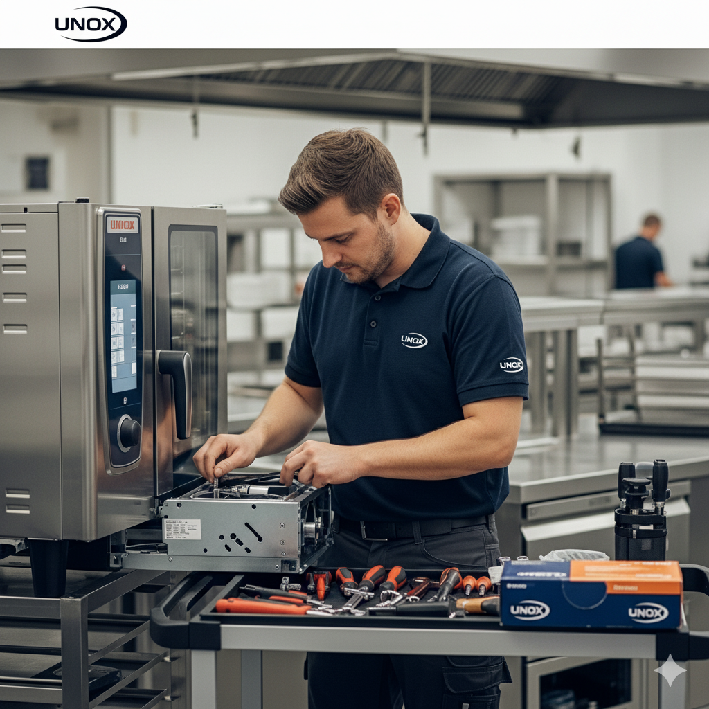 Restofabrika обслуговує та ремонтує обладнання Unox. В наявності оригінальні запчастини та комплектуючі.